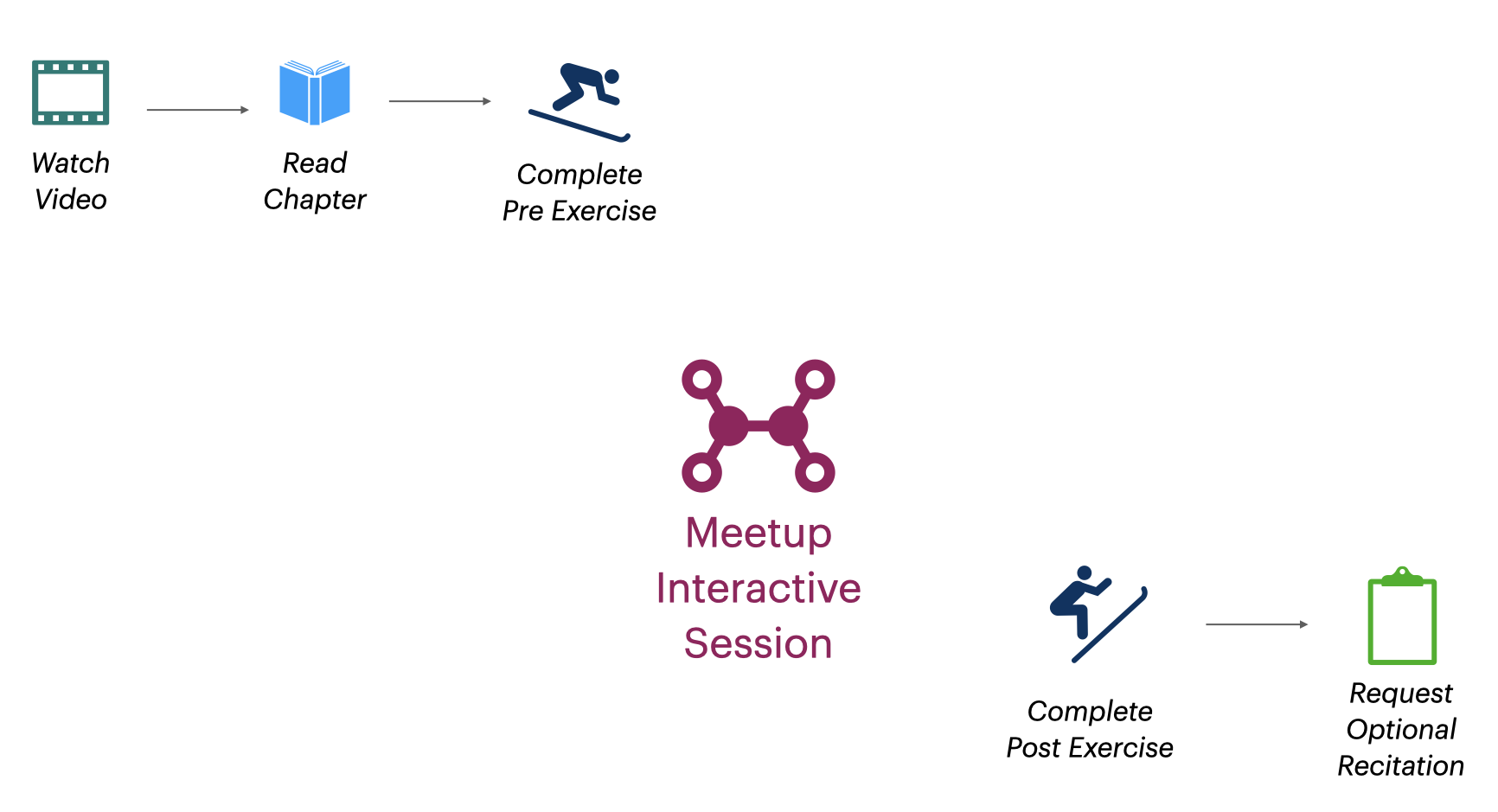 Following the Meetup, you will complete a post exercise to demonstrate your knowledge of the unit. You will receive badge upon successful completion of the unit. You may also request an optional recitation session if you have questions about the material or need additional feedback.